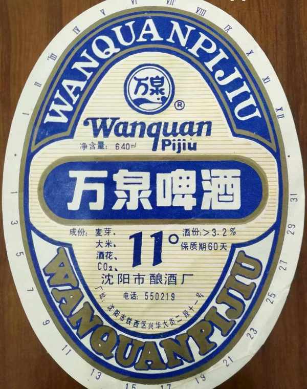 当时沈阳酿酒厂生产的啤酒牌子叫“万泉”,常见的有11度和12度两种,分别是熟啤酒和生啤酒。