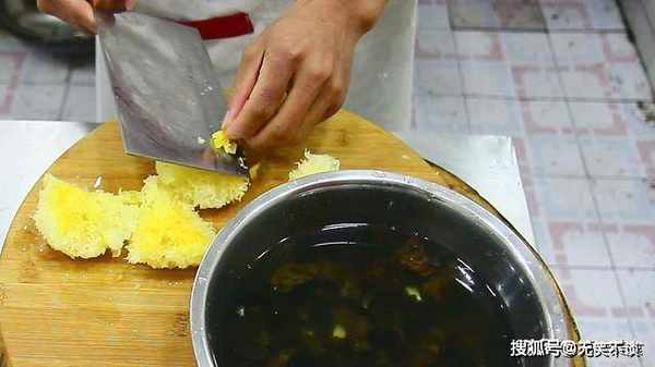 两个小时候,银耳木耳泡发好以后,摘去银耳的根部,银耳的根部也可以吃,只是口感不好,切去一部分硬的根。