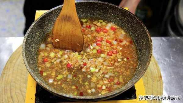 4.接下来我们开始烹饪,锅内烧油,油热以后倒入葱姜蒜末和小米椒,