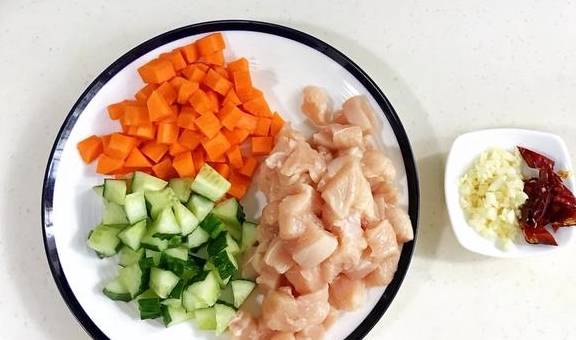 【所需配料】:鸡胸、黄瓜、胡萝卜、花生