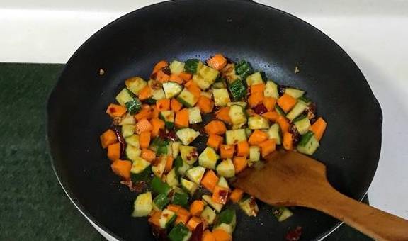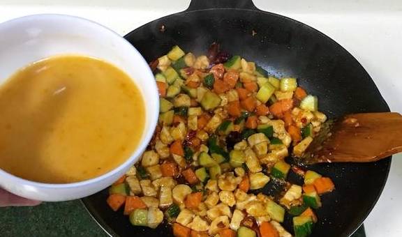 宫保鸡丁味道以香辣为主,虽然是川菜中的代表菜肴,辣味是比较柔和的,主要是突出了辣椒的香味。里面用的食材很丰富,除了鸡肉之外,用胡萝卜和黄瓜作为配菜,加入黄瓜之后让这道菜不显得那么油腻。宫保鸡丁中的花生米也是特色,酥脆的花生米搭配鸡肉,越嚼越香。有的朋友上班喜欢自己带饭,这样不仅吃得健康而且也更省钱,像宫保鸡丁这道菜就很适合带饭。【菜名】:宫保鸡丁便当