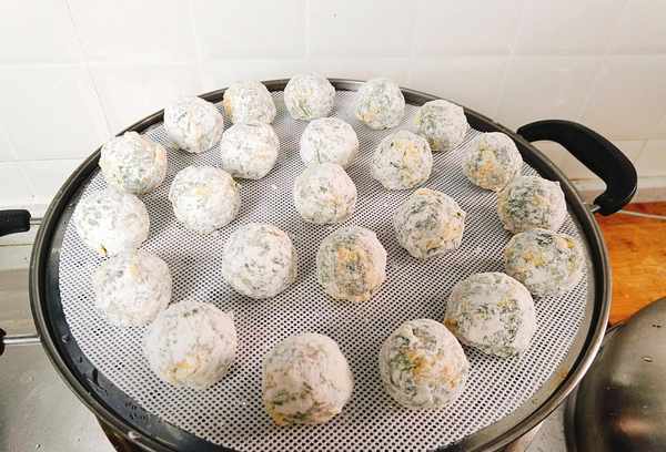白菜丸子蒸熟了就可以吃了。荠菜的新鲜和鸡蛋的清香,味道鲜美,营养丰富。