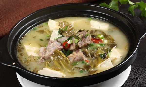 豆腐红烧排骨。排骨汤煮熟后,将豆腐洗净继续煮。最好马上吃,不然泡太久会变质变臭,很难去除。