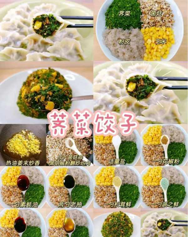 原料:荠菜、香菇、粉丝、玉米