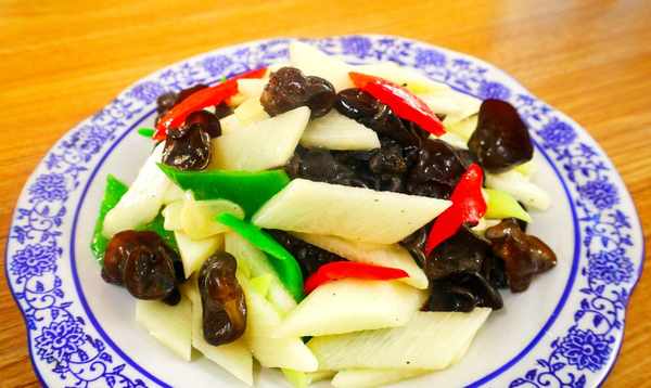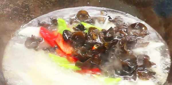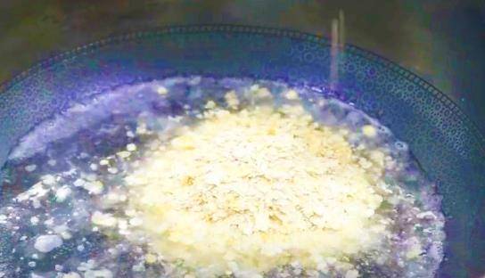 3、再次起锅,加入食用油,加入小料炒香,然后倒入漂白的材料,边快速搅拌边翻炒几下,倒入少许水。