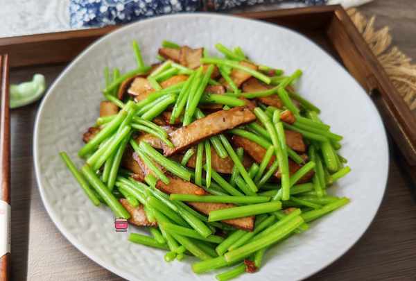 2、锅中烧开水,水加少许盐,将千丝倒入锅中焯水2分钟,捞出沥干备用。3、锅中油烧热,倒入大蒜炒香,再倒入千丝翻炒1分钟,将千丝炒至微黄。