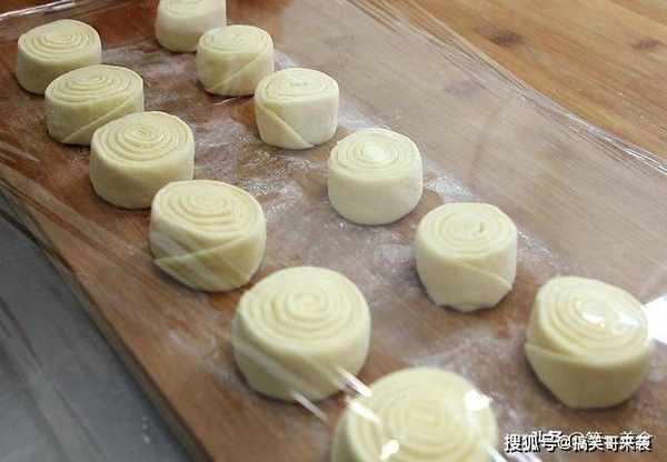 把饼坯再整理的圆润一点,把最外层的饼皮压在下面,做好的饼坯用保鲜膜盖住,再次发酵10分钟,发酵至饼皮微微鼓起即可,这样烙出来的饼更加蓬松暄软。