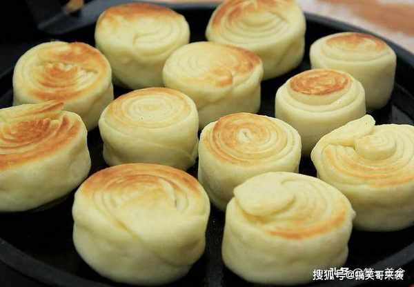 起锅开小火,均匀刷上植物油,油温五成热,把发酵好的饼坯放入锅中,一面煎黄以后翻过来煎另一面,就这样来回翻几次,烙制6分钟左右,饼两面都呈金黄色,摁压快速回弹时就熟了,一道松软可口的奶香盘阳饼就做好了。