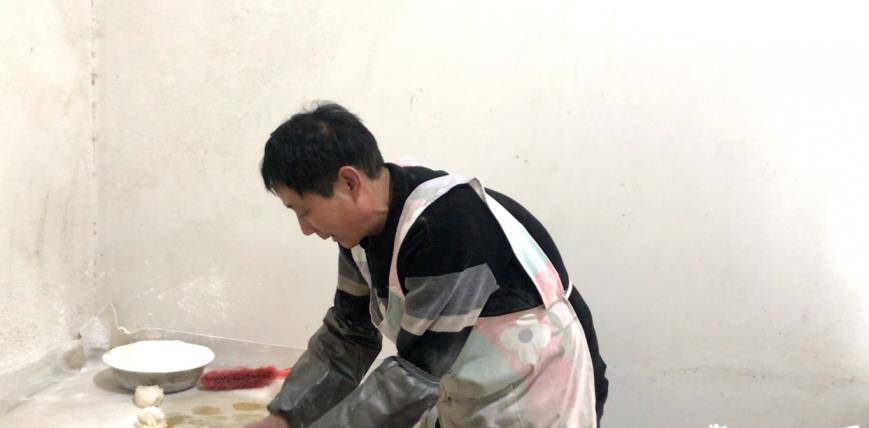 2月21日早上9点走进这家包子店,热气腾腾,“白气”从蒸汽中升起。潘有春忙着揉面团。