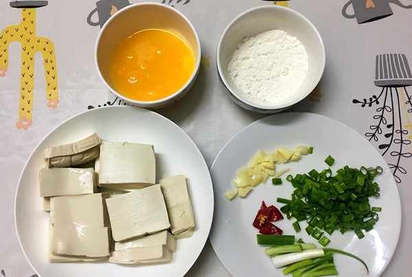 材料准备:豆腐、鸡蛋、面粉、盐、油、葱花