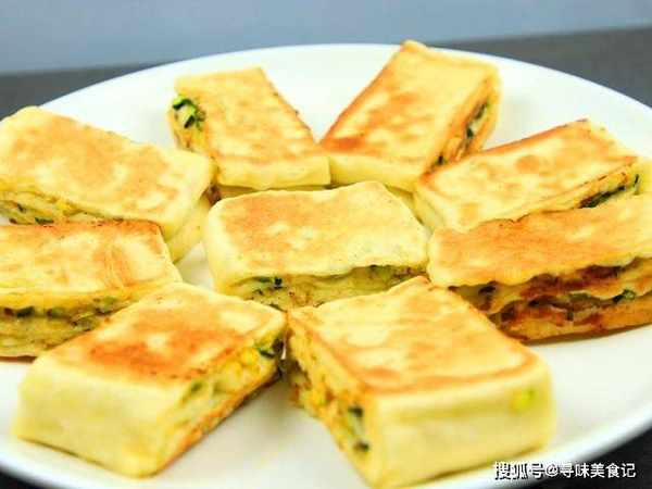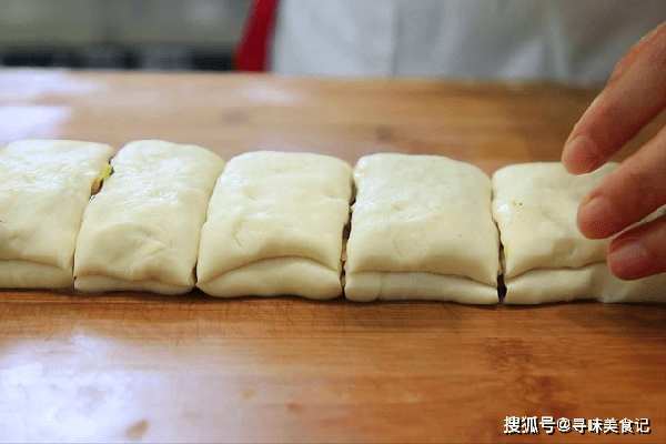 最后折成长条状,用刀切成均匀的小块。电饼铛加热以后,均匀刷上植物油,把饼放入锅中烙制,一面煎黄翻过来煎另一面。