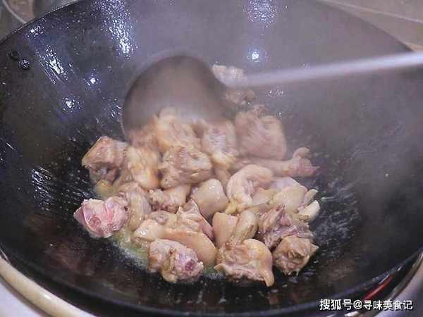 把锅烧热,热锅凉油,油温五成热时把鸭肉倒入锅中。待鸭皮收紧以后再晃动锅,这样能防止炸锅。慢慢地炒出鸭肉中的水分,炒制期间鸭肉会吐出很多鸭油。