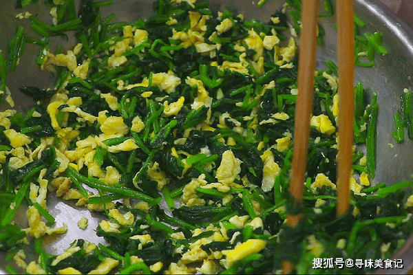 起锅烧油,油烧热以后,把蛋液倒入锅中,轻轻的搅动。让蛋液均匀受热,蛋液全部定型以后倒出。