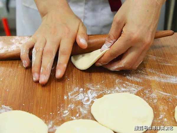 从中间挖个孔搓成粗条,切成大小均等的面剂子,把每个面剂子揉搓光滑,整成一个圆,拿擀面杖擀成中间厚四周薄的一个片。