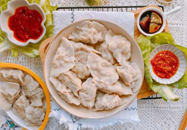 2、包好的牛心菜饺子能蒸能煮也能煎着吃,各有风味;