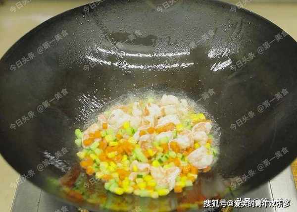 趁着这个空儿 ,咱切点小黄瓜丁 、小胡萝卜、再放进去玉米粒,好看好吃还营养。