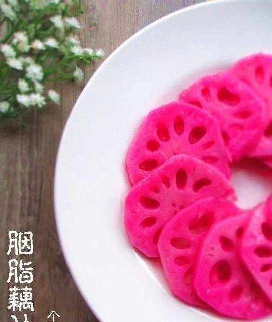 7.将莲藕片摆放在碗盆中,将另一个玻璃碗中的果酱均匀淋没过藕片。