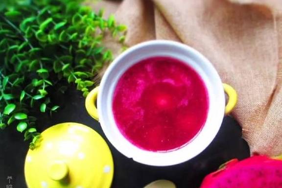 4、红心火龙果削去外皮,切小块,加入原汁机榨汁