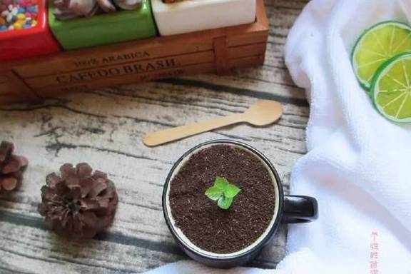 10.最后一层铺饼干末压平即可,插上小绿植,超级像盆栽