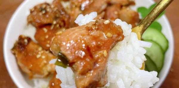 4.打开锅盖,趁热用筷子把鸡块从锅里挑出来,放在米饭上面,然后把洋葱酱淋在鸡块上就可以开吃了。烧鸡酱汁浓郁,配上一大勺米饭入口,香气不说,简直就是美味。