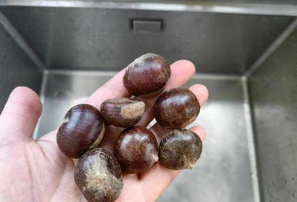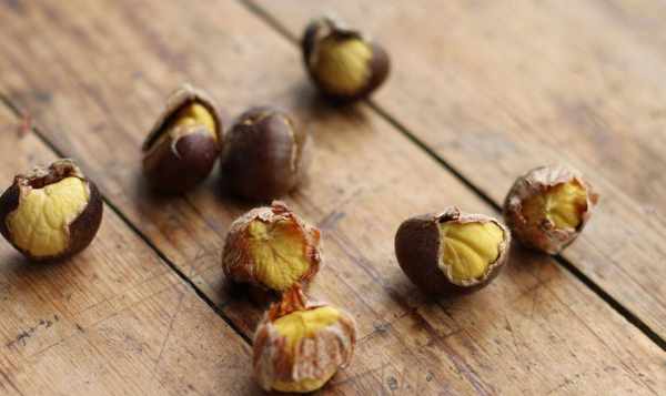 栗子熟了,趁热去壳。由于它是用于填充,因此很容易剥离而不会保留颗粒。