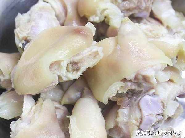 适量的干花生用温水浸泡1个小时去除红衣;两个猪蹄用喷枪烤一下去除残留的猪毛和皮腥味,然后刮去焦黑的痕迹用清水洗干净,再把猪蹄破开剁成小块。
