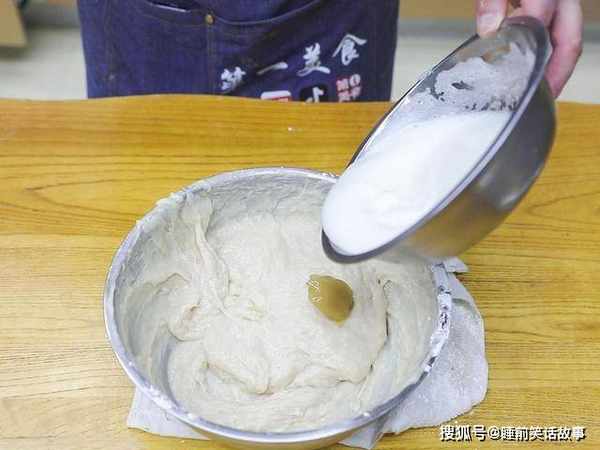 准备几个鸡蛋取出蛋清打发,然后将打发的蛋清倒入肉泥中,加入一勺猪油增香充分搅拌。