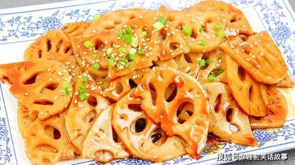 锅中加入少许食用油,加入一勺清水,放入白糖100克、食盐2克、香醋20克,不停地搅动把白糖化开,加入老抽调色,水烧开后汤汁粘稠起大泡,倒入焯好的藕片翻炒均匀,淋上一点水淀粉、少许明油,汤汁收粘稠以后即可出锅,最后撒上一些葱花和熟芝麻,美味即成。
