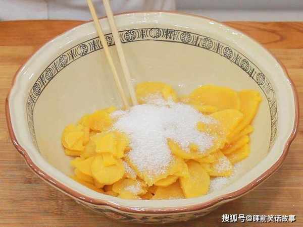 一个红薯去皮,从中间破开,切成均匀薄片,切好的红薯片放入蒸笼里面,水烧开以后上笼蒸制10分钟。取出红薯加入适量白糖,化开白糖的同时将红薯搅成细腻的红薯泥,搅拌均匀以后静置晾凉备用。