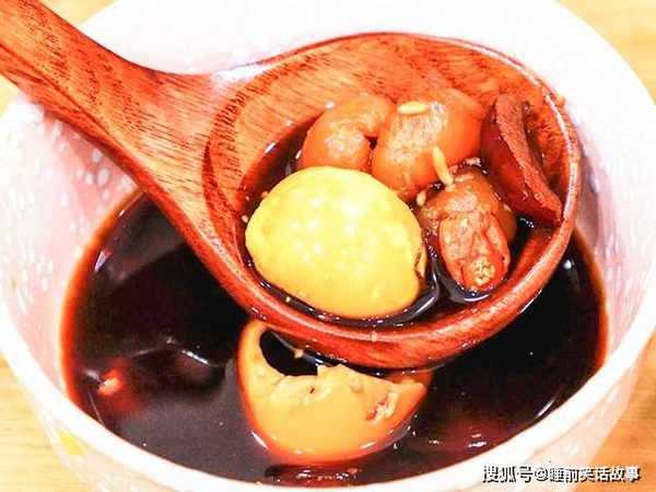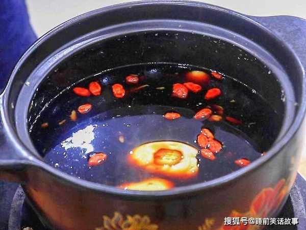 锅中加入适量的水,放入煮好的鸡蛋、当归、红枣、桂圆,大火烧开后再转小火炖20分钟,然后倒入酒糟、枸杞和红糖,继续煲上3-4分钟即可出锅。