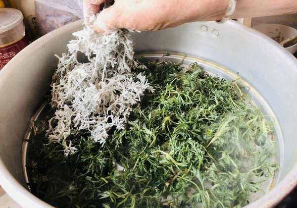 将洗净的白艾草用热水焯一分钟左右,然后过冷水,根据一次吃的量做成丸子,放入冰箱冷藏保存。