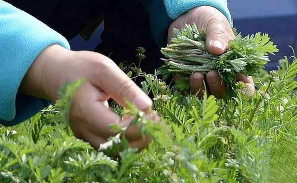 刚出土的青蒿在北方随处可见,粗大的一簇簇,叶子表面好像沾上了白霜