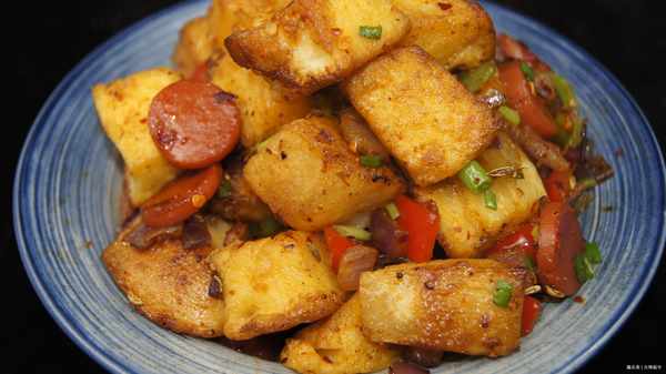 放入馒头,让馒头迅速吸收下面的汁水。馒头在锅里疯狂吸汁。这时候我们需要加入花椒、孜然粉、花椒和盐一起翻炒,一分钟就出锅了!