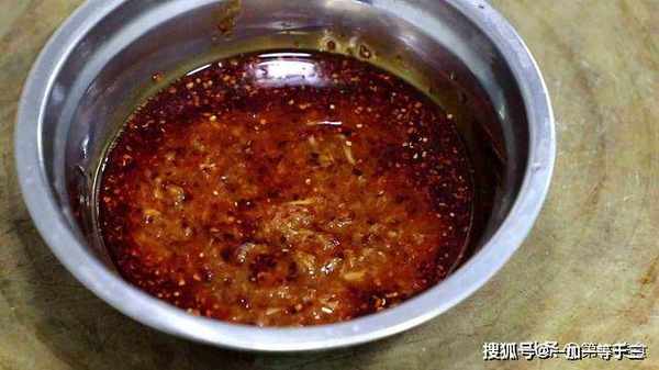 5.加入味精1克,白糖少许,生抽10克,陈醋3克,搅拌均匀,再放入20克辣椒红油,倒入小盆中,加入麻油5克拌匀备用。