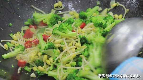 到这里一道清脆爽口的西兰花炒豆芽就做好了。