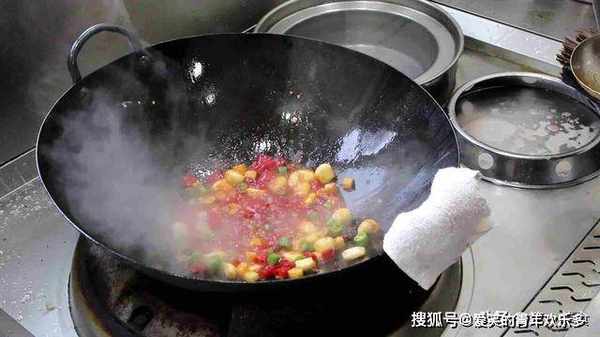 6.把控过油的牛蛙倒入锅中,颠锅翻炒给牛蛙上色,从锅边淋入料酒5克翻炒均匀,料酒遇热挥发能带走牛蛙的腥味,再从锅边淋入适量清水。
