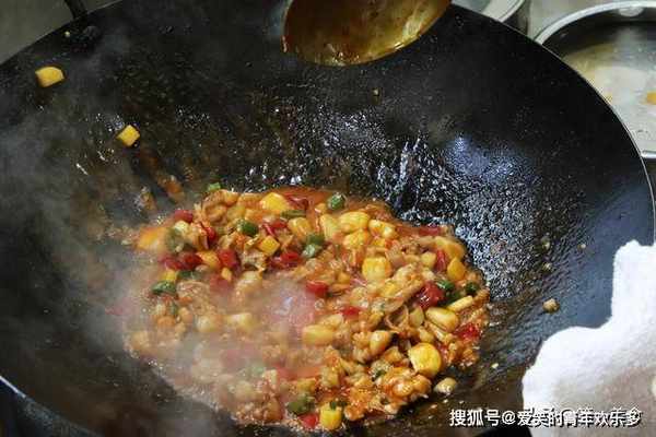 7.加入鸡粉2克,胡椒粉1克,白糖少许,生抽5克,老抽2克提色,酱料中的食盐量已经足够,不用再加搅拌均匀转大火煮2分钟。2分钟以后汤汁已经非常浓郁,牛蛙也已经熟透充分入味,加少许水淀粉把汤汁收至粘稠,再淋入少许辣椒红油,辣椒油能使菜品油润发亮,颠锅翻匀后即可出锅。