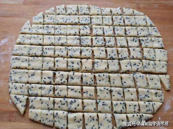 6、擀薄之后,用刀切成小四方块。