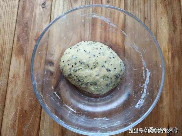 4、盖保鲜膜醒发1个小时,比原来2倍大,变得非常松软,取出先揉搓排气。