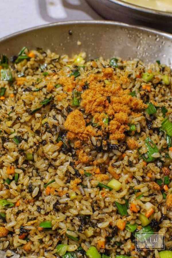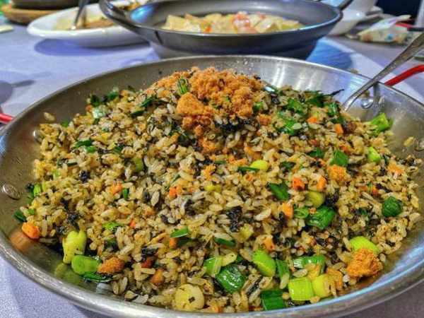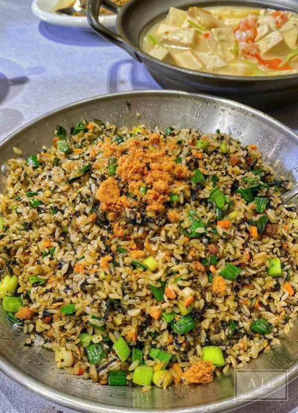 招牌主食紫菜饭,米饭粒粒分明带有嚼劲,入口先是咸鲜的紫菜香,细品不乏虾仁干、干贝、肉丝、胡萝卜丝,还有点睛的肉松,带着酱香的锅气,干饭人表示十分满意,连干两碗。