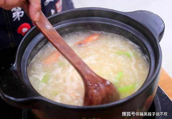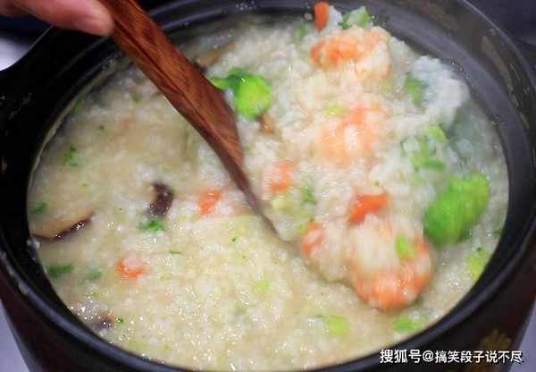 6.8分钟以后,把虾仁、香菇、西兰花和胡萝卜倒入锅中,煮至米粥再次沸腾转为小火,开始调味:加入食盐3克,胡椒粉2克,继续熬制,千万不要放鸡精、味精一类的调味品,否则会影响整锅汤的鲜度,食材全部煮熟以后即可关火,一道浓郁鲜香的鲜虾粥就做好了。