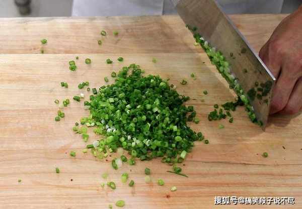 2.准备小葱一把切碎,切成葱花,放在盆里备用。