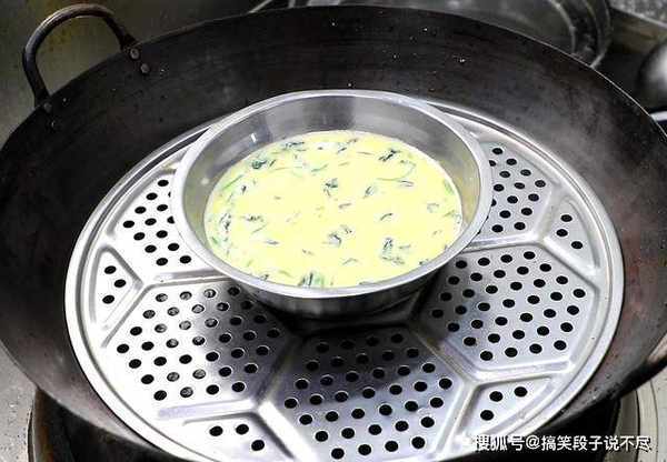 4.锅内烧水,放上篦子,先把水烧开,再把蛋液放入锅中,蛋液下锅一定要密封防止空气进入,开中小火蒸10分钟。