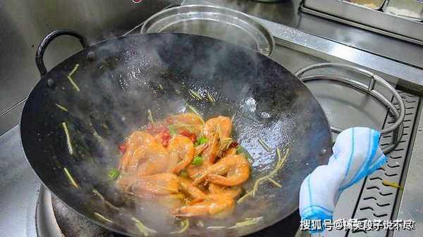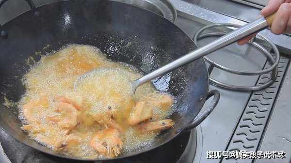 晃动炒锅,以免大虾粘锅,中小火炸制两分钟左右,等到大虾炸到金黄倒出控油。