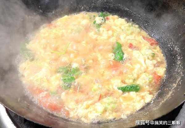 4.锅内烧油,倒入西红柿翻炒,翻炒出西红柿的汁水以后加入适量的清水,水煮开后转小火,先把手上沾上清水,用虎口挤出丸子,另一只手把丸子挖入锅内。所有的丸子下锅以后,开大火把水煮开,用勺子搅动一下防止豌豆丸子粘锅,丸子定型以后放入五香粉2克,食盐3克,再煮2分钟。