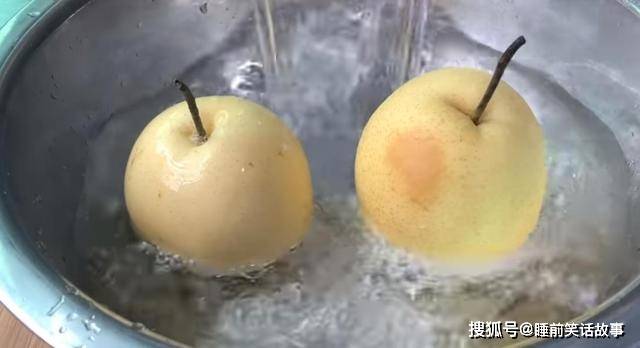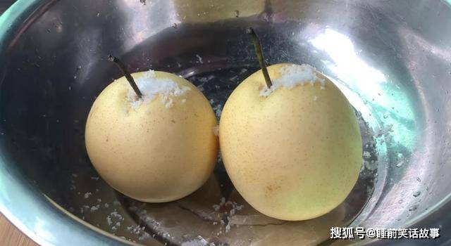 1、准备两个雪梨,用食盐搓洗,可以将表面的污渍搓掉,再用清水洗一次,就可以很干净了。
