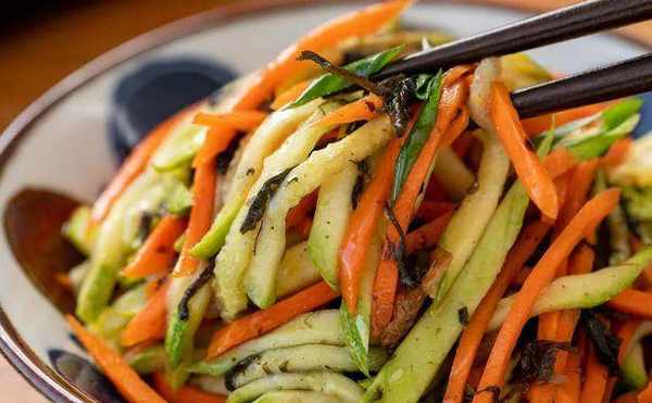 杀过水的瓜类和胡萝卜更加清脆,筷子入嘴时发出呜呜的声音,吃起来沙沙作响。