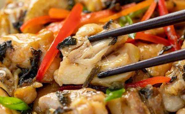 在腌制和清蒸的过程中,橄榄菜浓郁的香味慢慢渗入肉质。