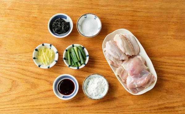 1.将清洗干净的鸡翅对半切开,鸡腿肉切块待用