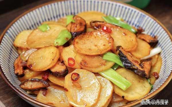 4、汤汁基本收干后撒葱段,翻炒均匀关火即可。酱香浓郁又下饭的香菇素炒土豆片就做好了,端上桌比大鱼大肉还抢手哟❗❗